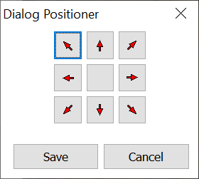 Click on one of the arrows or the center button. This moves the Dialog Sizer window relative to the button selected. If the arrow button in the upper left corner is selected, the Dialog Sizer window moves to the upper left corner of the screen. Click Save and this is where the dialog displays during macro playback.
