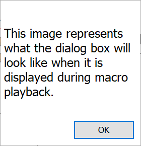 This window displays the text of the dialog box. It is also displayed in the same dimensions as it will appear during macro playback.