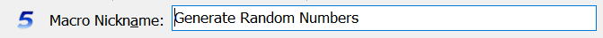 The nickname is used to help remember the function of the macro. If a nickname was entered when assigning the macro activation, the nickname is displayed as shown in the image above. The nickname may be changed in this field if desired.