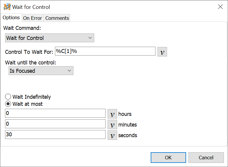 This command allows the user to create a macro that waits for a specific Window Control to gain focus, become visible or become enabled. Or have the macro wait for their opposites - wait for control to lose focus, become invisible or become disabled. So, the user could write a macro that looks like the following: