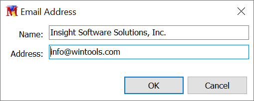 Click on the Add button to open the Email Recipient Maintenance window shown below. The two fields will be blank. Just enter the person's name and email address and click OK to add that person to the list.