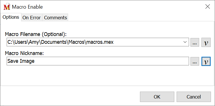 Since Macro Express allows more than a single macro file to be open at one time, click on the Browse button and locate the file that contains the macro to be enabled. Or manually type in the file and path.