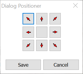 Click on one of the arrows or the center button. This moves the Dialog Sizer window relative to the button selected. If the arrow button in the upper left corner is selected, the Dialog Sizer window moves to the upper left corner of the screen. Click Save and this is where the dialog displays during macro playback.