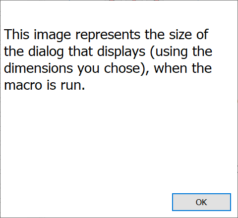 This window displays the text of the dialog box. It is also displayed in the same dimensions as it will appear during macro playback.