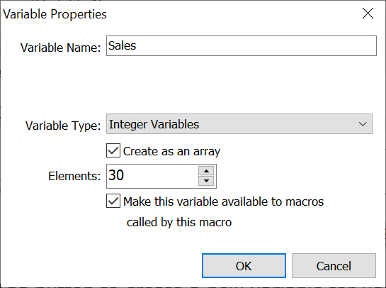 Select this option to set the variable as an array and then choose the number of elements to make available in the array.